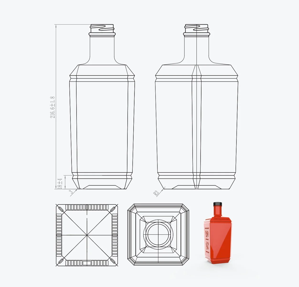 Core range bottles are screen printed by the bottle manufacturer after the bottles are formed and shorter run editions utilise the same clear bottle with a printed label applied at the distillery providing a flexible system for different production numbers. Custom 50mL glass esspresso cups with metal tear top provide a unique format for counter top sales in stores.